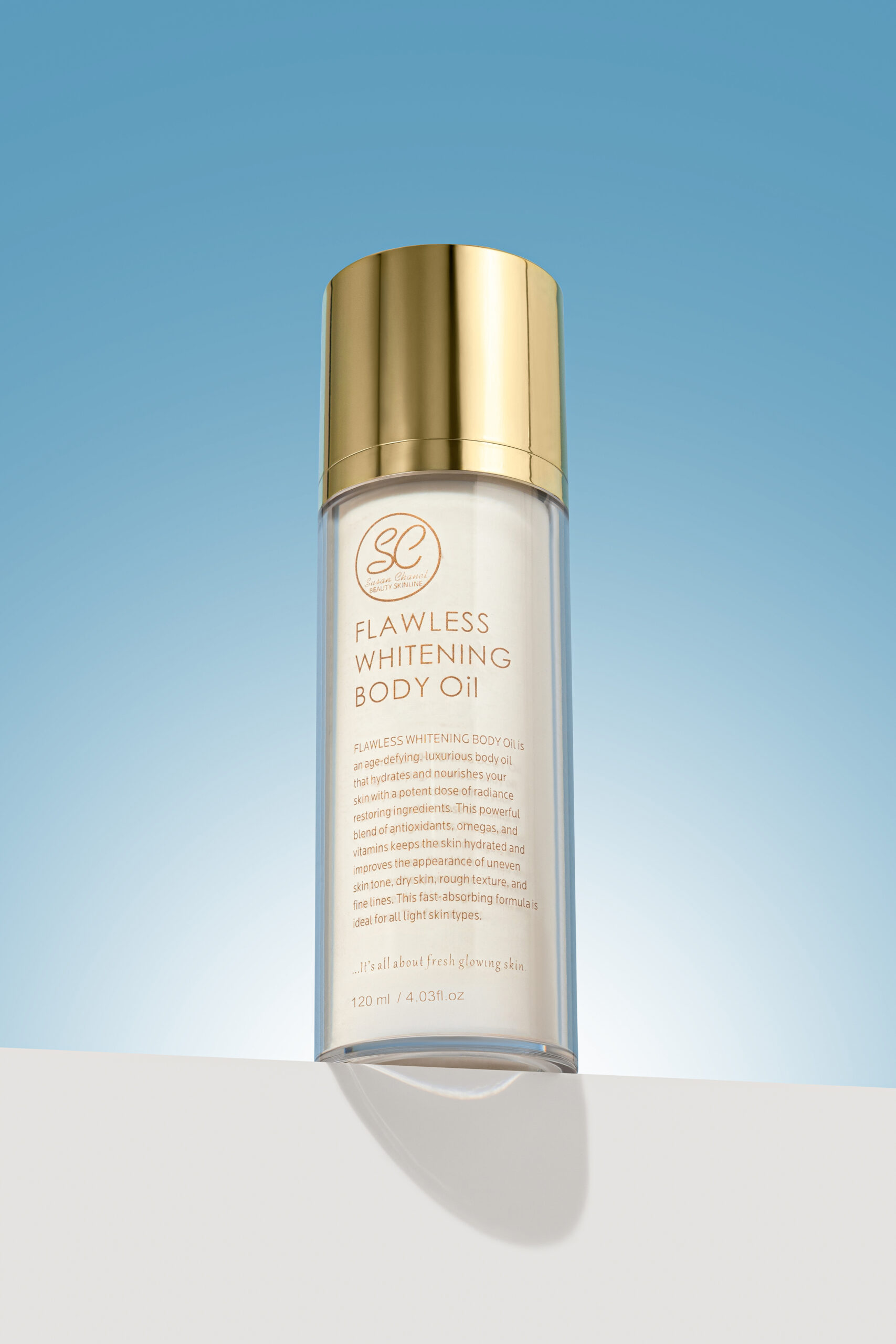 FLAWLESS WHITENING Oil is an age-defying, luxurious body oil that hydrates and nourishes your skin with a potent dose of radiance restoring ingredients. This powerful blend of antioxidants, omegas and vitamins keeps the skin hydrated and improves the appearance of uneven skin tone, dry skin, rough texture and fine lines.